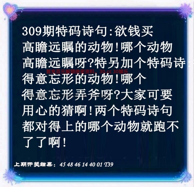 309期 欲钱买高瞻远瞩的动物 解释:高瞻远瞩解:虎龙鼠蛇 欲钱买得意忘形的动物 解释:得意忘形解:羊猴马 七肖:羊猴马虎龙鼠蛇 |
